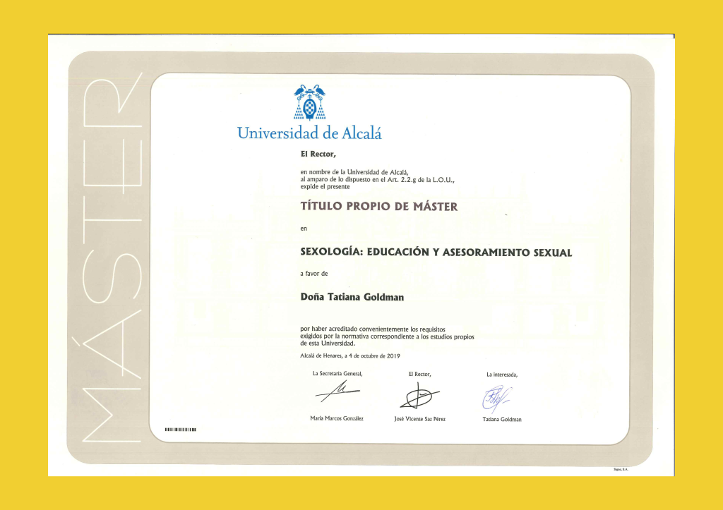 “Sexología: asesoramiento y educación” ● Universidad de Alcalá (Madrid, España).